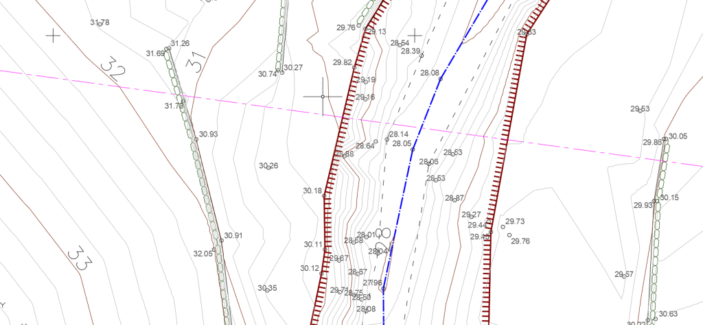 Σε αυτό το σημείο θα ήθελα να αναφέρω πως η μέθοδος που χρησιμοποιώ εδώ και καιρό για να κατασκευάσω ένα ΨΜΕ (Ψηφιακό Μοντέλο Εδάφους) και τις αντίστοιχες ισοϋψείς βασίζεται στο RAS Mapper του HEC RAS . Στο HEC RAS ο χρήστης μπορεί να εισάγει διατομές κατά μήκος ενός άξονα, και το RAS Mapper έχει την δυνατότητα να κάνει γραμμική παρεμβολή μεταξύ των διατομών για να δημιουργήσει το ΨΜΕ (δείτε εδώ). Η μέθοδος αυτή είναι αρκετά αξιόπιστη και όταν υπάρχουν πολλές διατομές κατά μήκος του άξονα παράγει ένα αρκετά ρεαλιστικό ΨΜΕ, το οποίο μπορεί να συμπεριλαμβάνει και τοιχία. Όμως έχει τα εξής μειονεκτήματα: